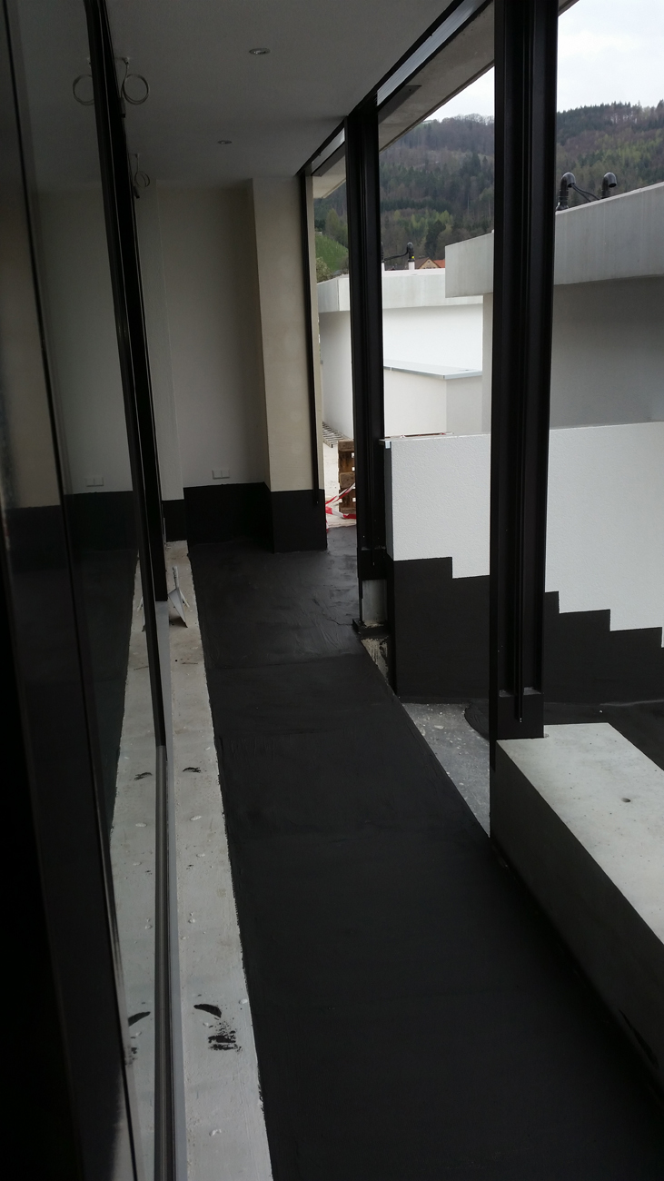 - das Anbringen von Abdichtungen an Fenster- und Türschwellen, Carportdächern, Sockeln, Tiefgaragendecken, Balkonen/Terrassen/Laubengängen, unter Gussasphalt und an Fundamenten,